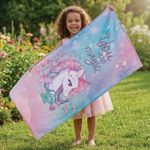 Toalla Infantil Unicornio Star: Haz que la hora del baño sea mágica con esta toalla infantil decorada con unicornios y estrellas, brindando suavidad y alegría.